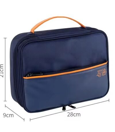 Premium Tech Accessories Organizer Bag – Double Layer Travel Gadget Case (28 x 21 x 9 cm, Navy Blue)