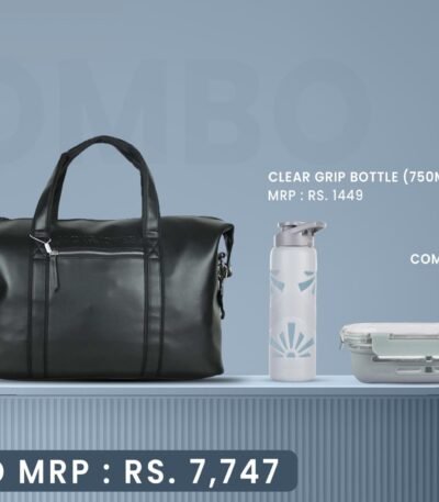 Walter Travel Combo – Premium Duffle Bag + Clear Grip Bottle (750ml) + Fresh Grip Tiffin (580ml)