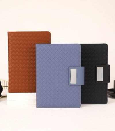 Elite Woven Texture Notebook Collection – Brown, Blue & Black Editions (Magnetic Flap Closure)