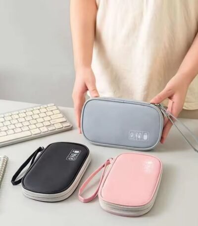 Multi-Functional Travel Cable Organizer Pouch – Portable Gadget Storage Bag (Available in Grey, Black & Pink)