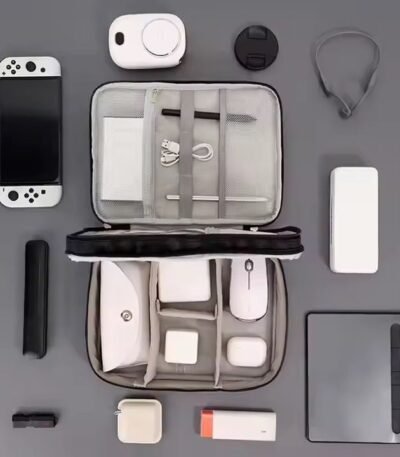 Multi-Layer Tech Accessories Organizer Bag – Travel Electronic Gadget Case (Water-Resistant, Double-Layer, Multiple Colors)