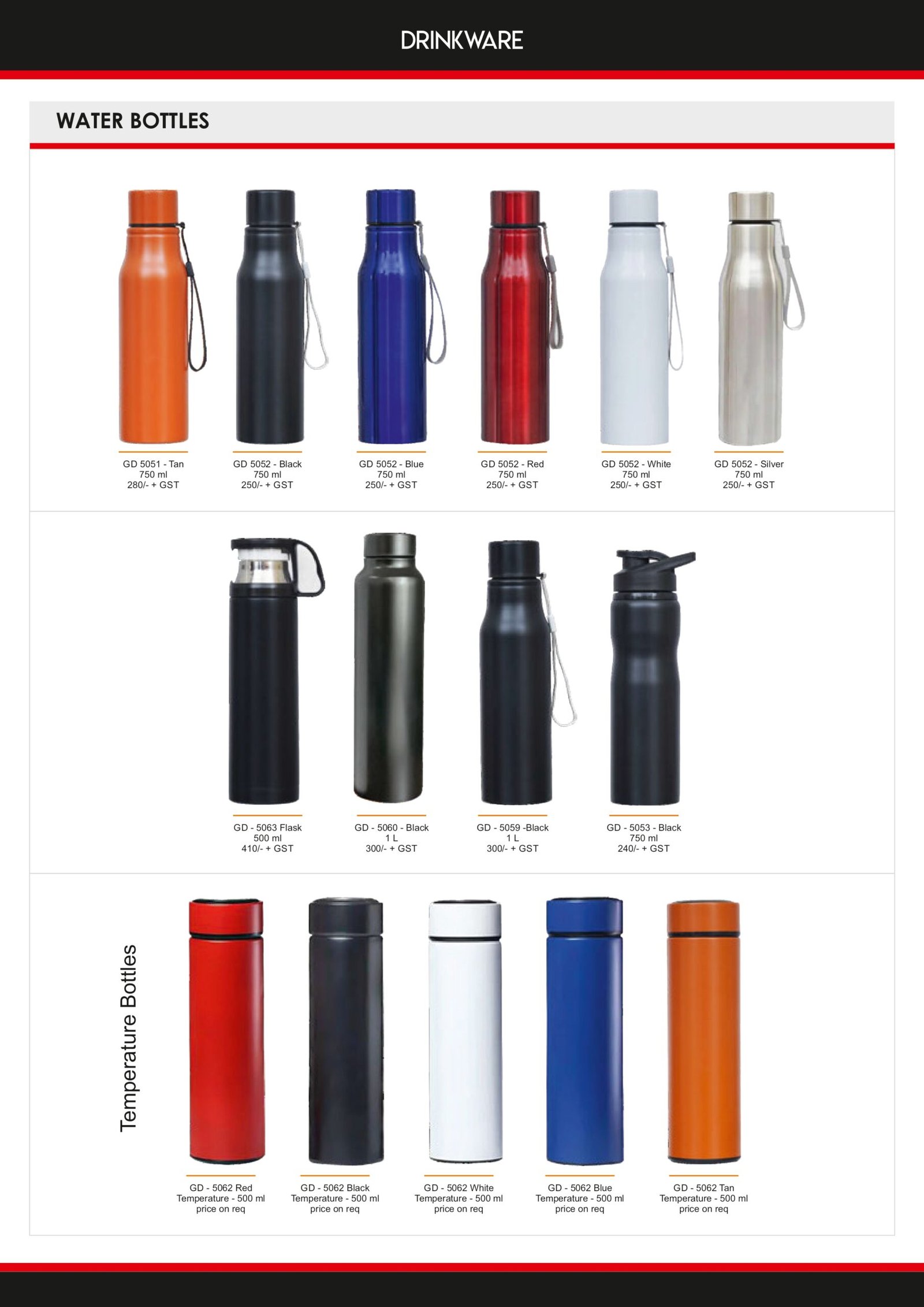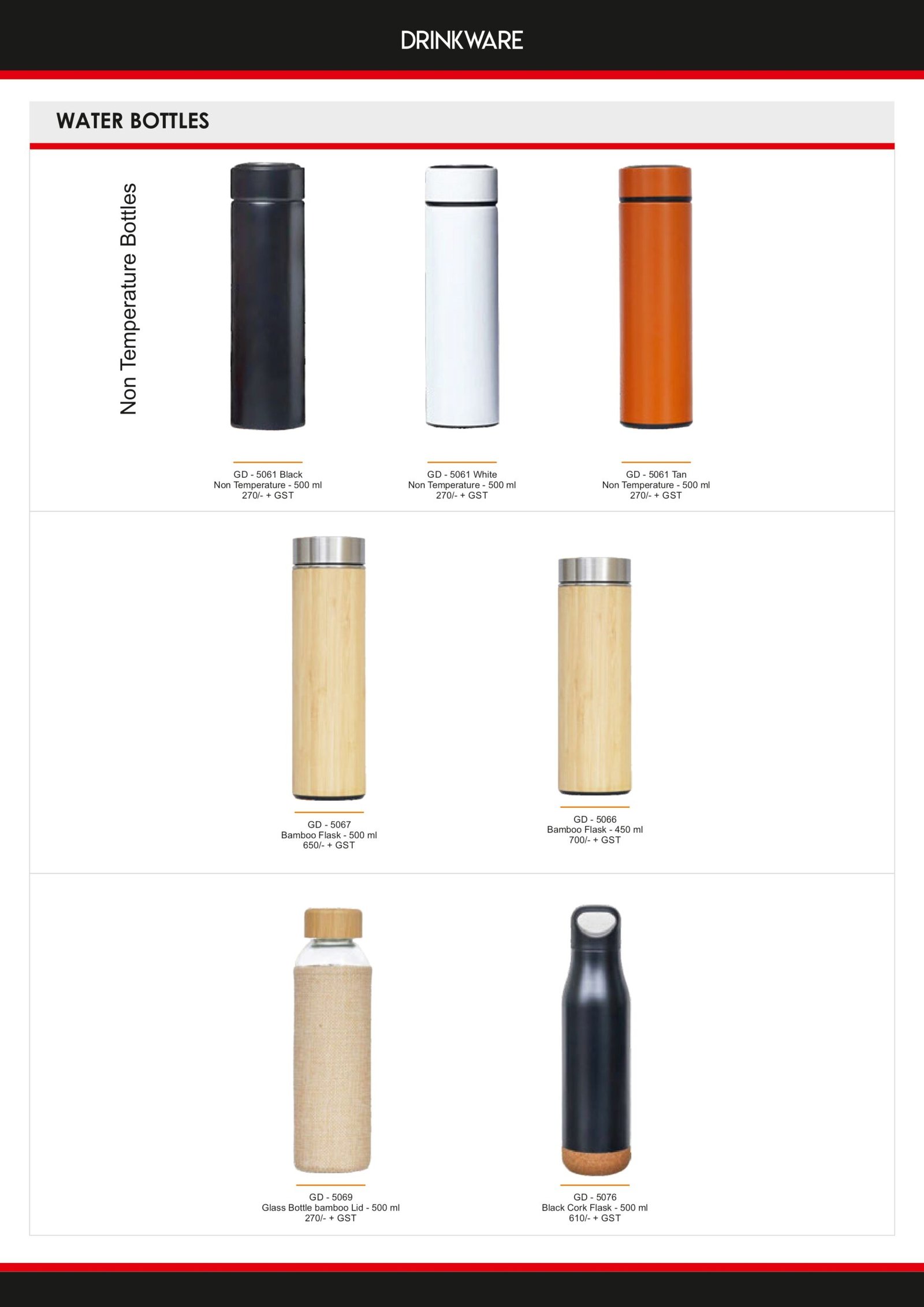 Premium reusable water bottle and flask range crafted from high-quality stainless steel, glass, and bamboo. Sleek, durable, leak-proof, and eco-friendly — perfect for daily hydration, travel, or gifting, with select models offering temperature retention for hot or cold drinks.
